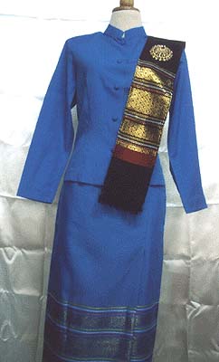 Shirt, skirt, belt, shoulder cloth with broche
